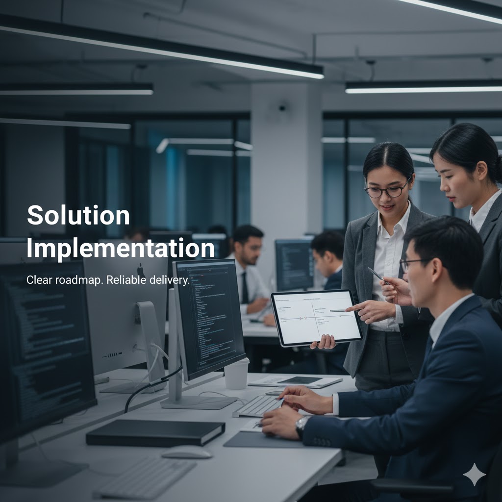 Triển khai hệ thống và giải pháp công nghệ theo lộ trình rõ ràng, phù hợp với năng lực và giai đoạn phát triển của doanh nghiệp.